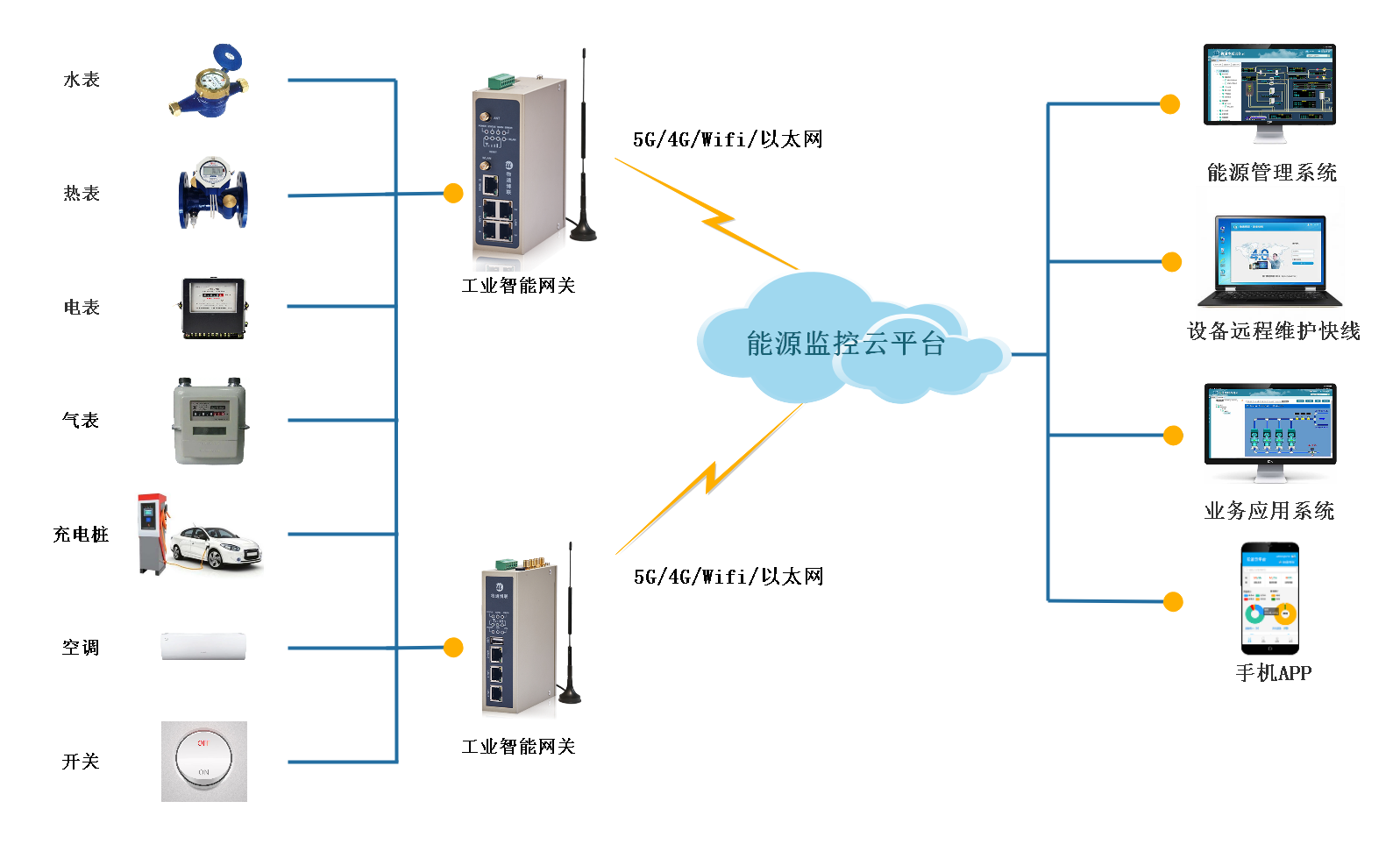 1、通過物通博聯(lián)智能網(wǎng)關(guān)對(duì)水、電、熱、氣等能源設(shè)備進(jìn)行數(shù)據(jù)采集,將數(shù)據(jù)上傳到能源監(jiān)控管理系統(tǒng),實(shí)時(shí)監(jiān)控、智能分析,幫助企業(yè)了解能源消耗情況,實(shí)現(xiàn)能源管理運(yùn)營(yíng)維護(hù)和能耗管理。