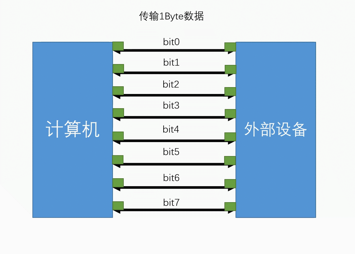 如果一組數(shù)據(jù)的各個數(shù)據(jù)(位)在多條線上同時傳輸,則這種傳輸方式稱為并行通信。舉例一個字節(jié)的8個位置,在8條電線上同時傳輸!最簡單的理解就是PLC的IO接線,一根線對應一個信號!